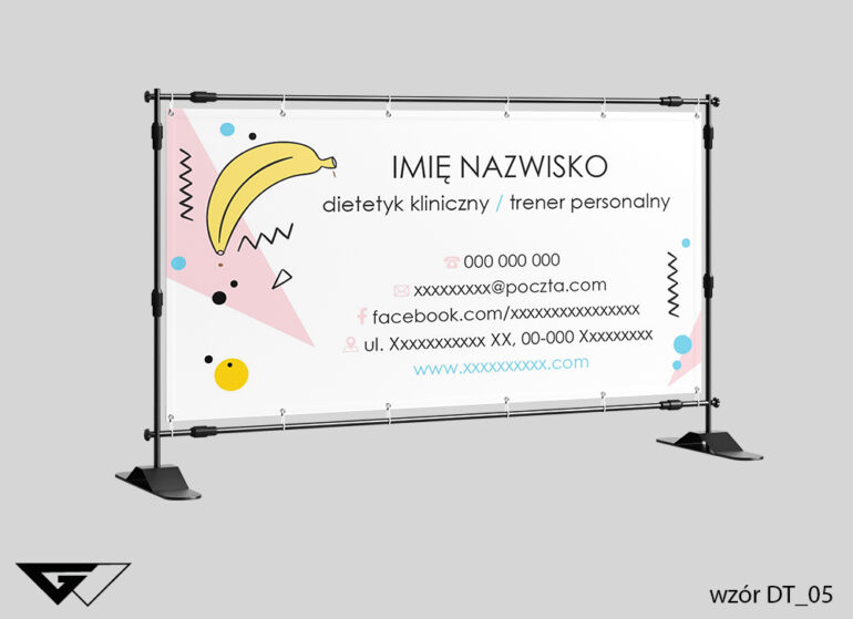 Podoba Ci się ten wzór? Wydrukujemy go dla Ciebie z Twoimi danymi – przed drukiem podeślemy podgląd do akceptacji. Baner ma wymiary 200X100 lub 300×150, ale możemy też dostosować wymiar do Twoich potrzeb. Podłoże to: Baner laminowany 510g, oczkowany co 50 cm, odporny na warunki atmosferyczne. Masz pytania? Zapraszamy do kontaktu – napisz lub zadzwoń! 🙂