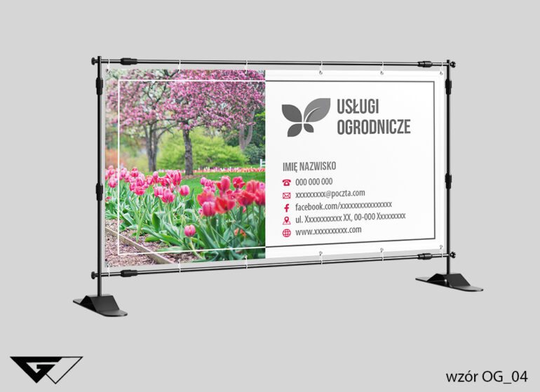 Podoba Ci się ten wzór? Wydrukujemy go dla Ciebie z Twoimi danymi – przed drukiem podeślemy podgląd do akceptacji. Baner ma wymiary 200X100 lub 300×150, ale możemy też dostosować wymiar do Twoich potrzeb. Podłoże to: Baner laminowany 510g, oczkowany co 50 cm, odporny na warunki atmosferyczne. Masz pytania? Zapraszamy do kontaktu – napisz lub zadzwoń! 🙂