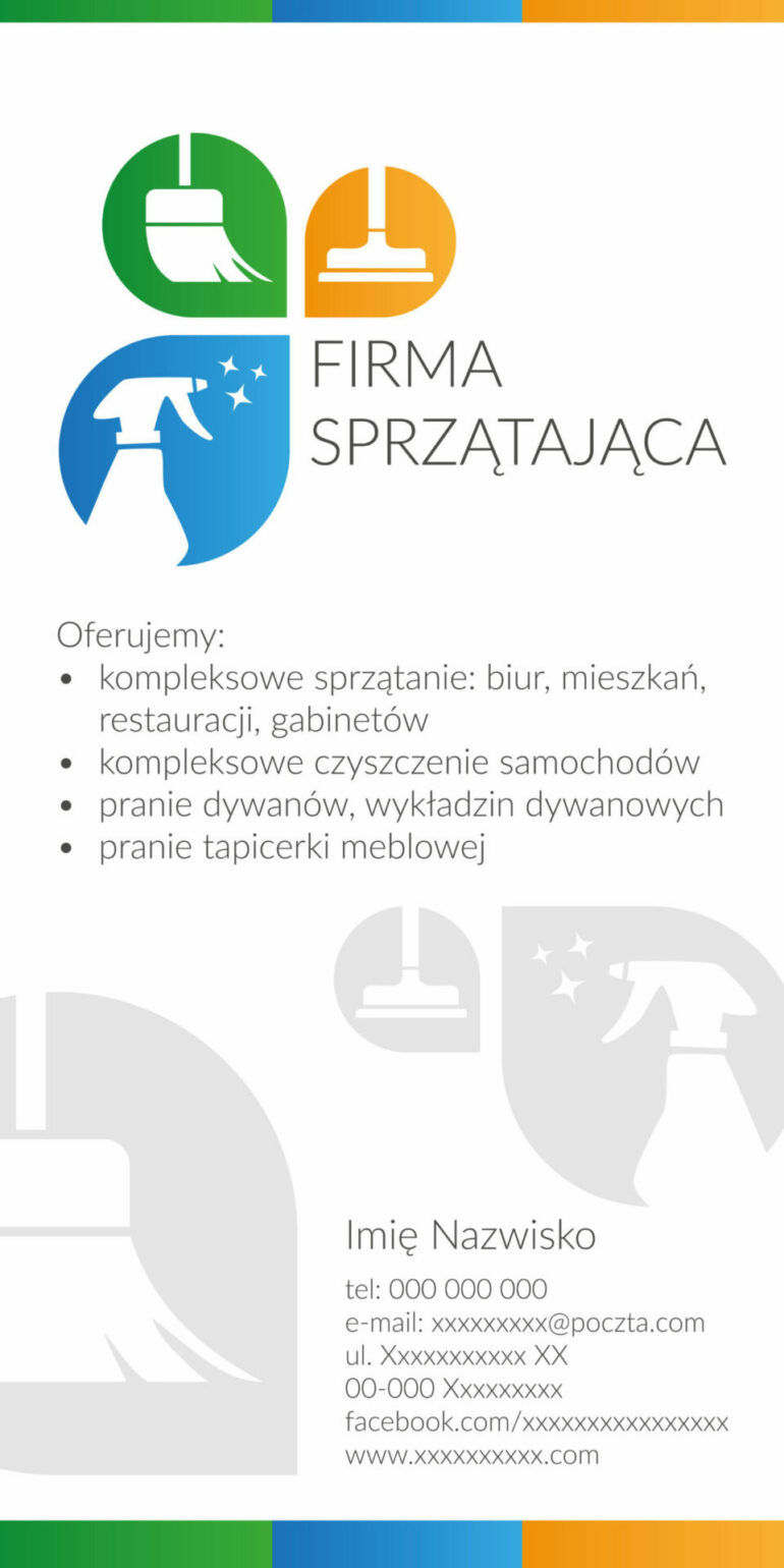 Podoba Ci się ten wzór? Wydrukujemy go dla Ciebie z Twoimi danymi – przed drukiem podeślemy podgląd do akceptacji. Roll-up ma wymiary 100×200. Podłoże nadruku: Polyester roll-up 240mic. Zestaw zawiera: wkład + kasetka.Zwijasz i rozwijasz nośnik, kiedy tylko chcesz. Możesz przenieść go w dowolne miejsce, zabrać wszędzie ze sobą.Masz pytania? Zapraszamy do kontaktu – napisz lub zadzwoń! 🙂