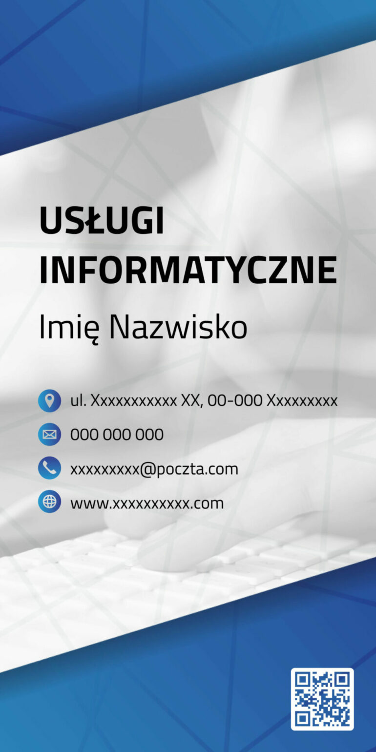 Podoba Ci się ten wzór? Wydrukujemy go dla Ciebie z Twoimi danymi – przed drukiem podeślemy podgląd do akceptacji. Roll-up ma wymiary 100×200. Podłoże nadruku: Polyester roll-up 240mic. Zestaw zawiera: wkład + kasetka.Zwijasz i rozwijasz nośnik, kiedy tylko chcesz. Możesz przenieść go w dowolne miejsce, zabrać wszędzie ze sobą.Masz pytania? Zapraszamy do kontaktu – napisz lub zadzwoń! 🙂