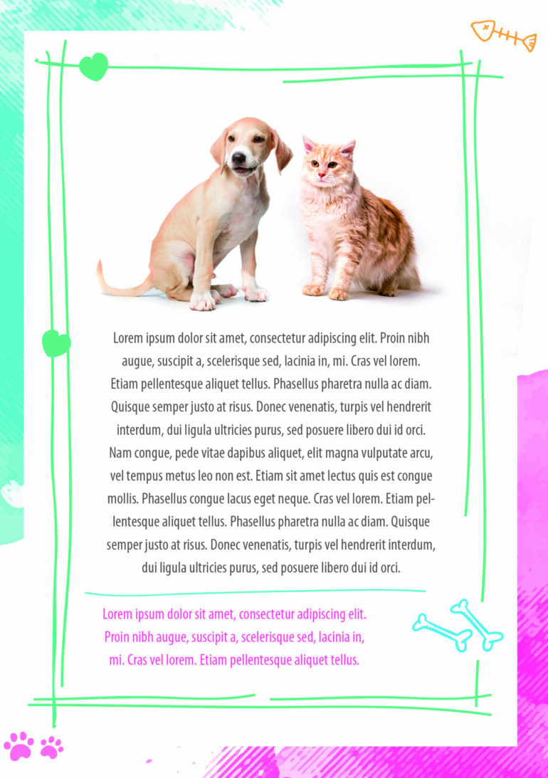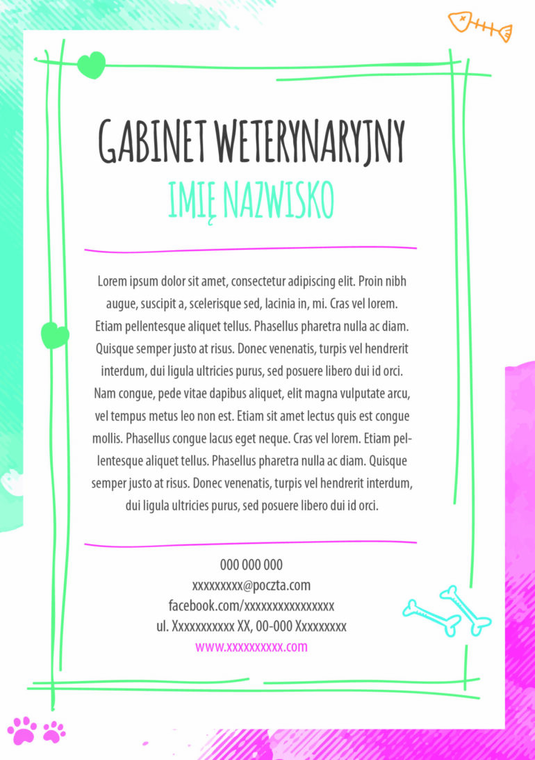 Kolorowa, wesoła, profesjonalna ulotka dla weterynarza.