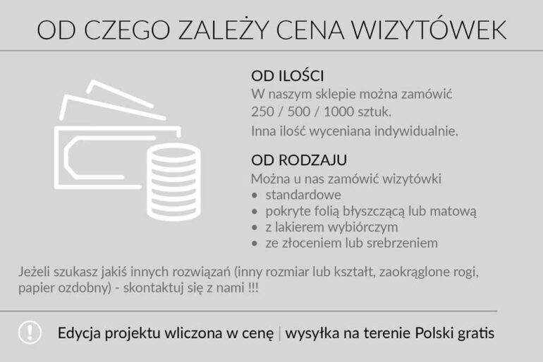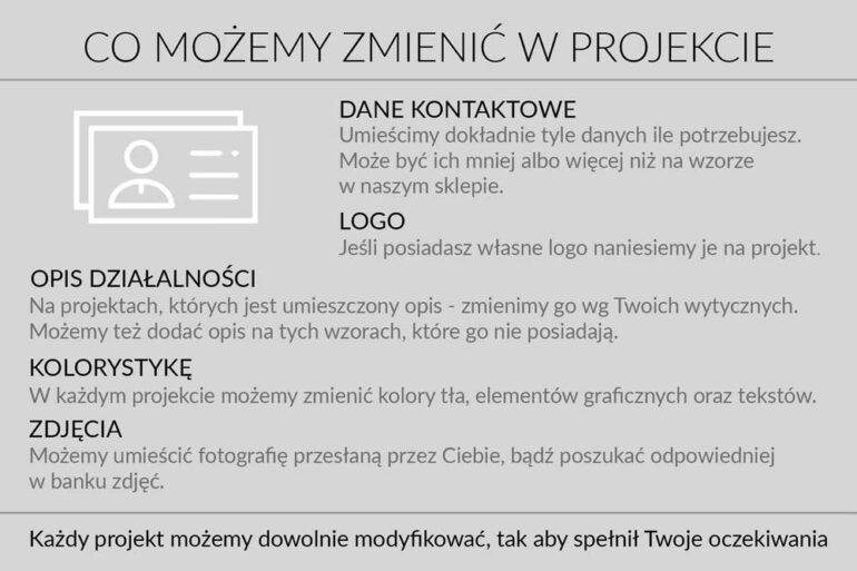 Podoba Ci się ten wzór? Wydrukujemy go dla Ciebie z Twoimi danymi – przed drukiem podeślemy podgląd do akceptacji. Wizytówka ma wymiary 90 x 50 mm. Wybierz ilość wizytówek jaką potrzebujesz. Wybierz rodzaj. Nie wiesz jaki? Zajrzyj do naszego poradnika .Masz pytania? Zapraszamy do kontaktu- napisz lub zadzwoń! 🙂