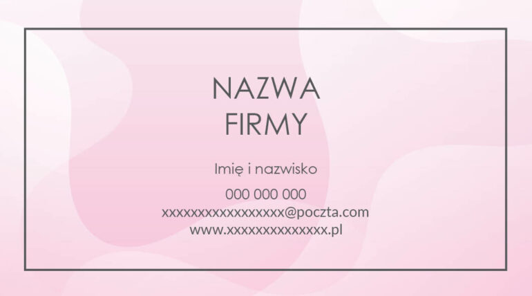 Podoba Ci się ten wzór? Wydrukujemy go dla Ciebie z Twoimi danymi – przed drukiem podeślemy podgląd do akceptacji. Wizytówka ma wymiary 90 x 50 mm. Wybierz ilość wizytówek jaką potrzebujesz. Wybierz rodzaj. Nie wiesz jaki? Zajrzyj do naszego poradnika .Masz pytania? Zapraszamy do kontaktu- napisz lub zadzwoń! 🙂